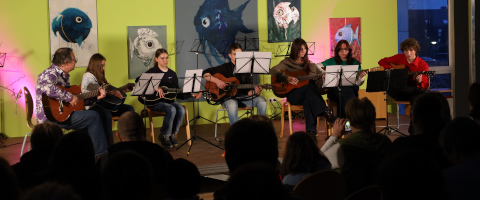 Den Abschluss gestaltete traditionell der Leistungskurs Musik 12/13 mit „Shape of You“ und „Uptown Girl“. So klang der Abend stimmungsvoll aus – und das Publikum trat beschwingt und voller Eindrücke den Heimweg an.