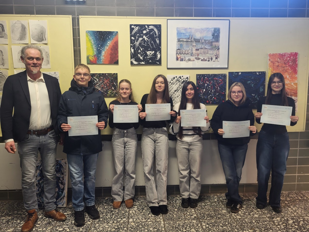 Die Fachgruppe Französisch und unser Schulleiter Herr Ehrenberg freuen sich, dass sieben unserer SchülerInnen die Prüfung zum DELF-Diplom erfolgreich bestanden haben. Vor den Winterferien überreichte Herr Ehrenberg ihnen das Zertifikat vom französischen Bildungsministerium. Herzlichen Glückwunsch an alle TeilnehmerInnen! Das Zertifikat ist ein erfolgreich erreichter Meilenstein ihrer Arbeit im Französischunterricht und ihres Engagements in der DELF AG.